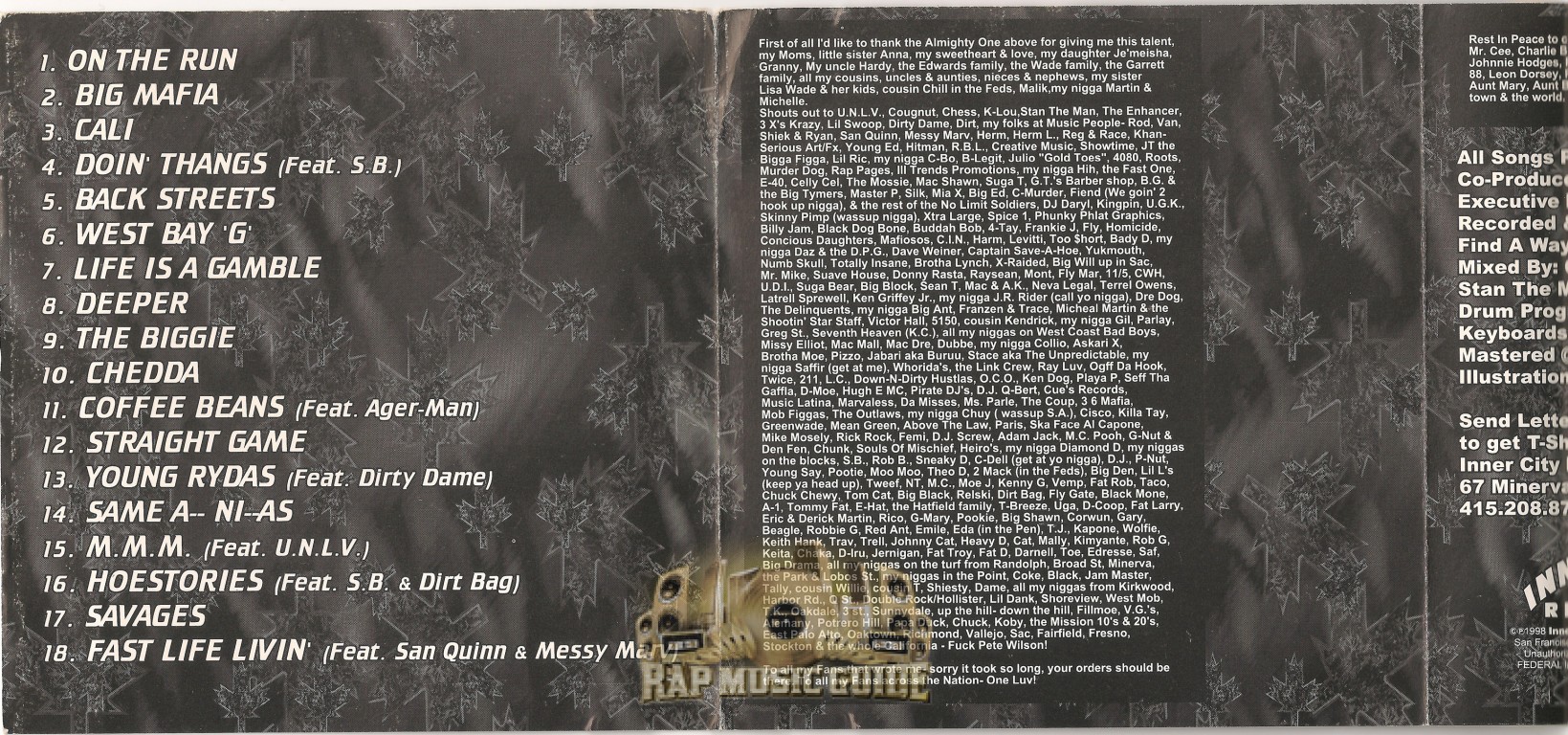 Genre: Rap Category: CD Also Known As (A.K.A.): Young Cellski Year: 1998 Release Type: 1st Press Record Label: Inner City Records Catalog #: ICR 2005-2 Bar Code: 710795200522 Case Type: Clear Standard Jewel Case Area Code: 415 City: San Francisco State: California