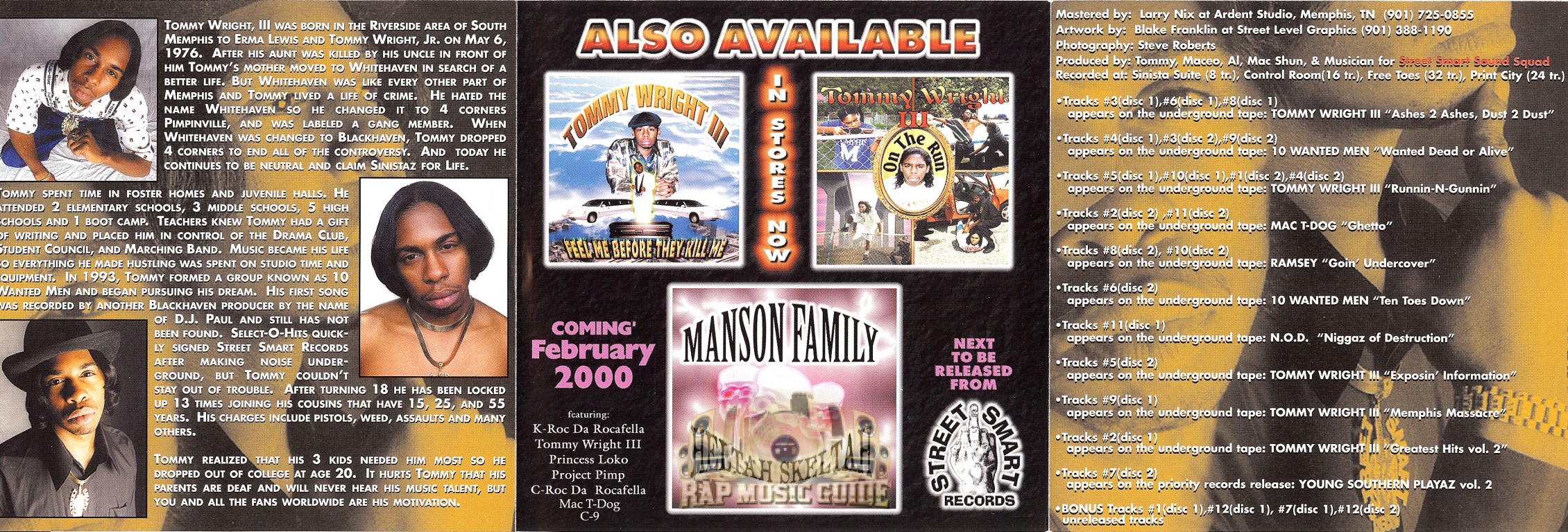 Genre: Rap Category: CD Year: 2000 Record Label: Street Smart Records Distributed By: SOH Distributors Network Album Art By: Street Level Graphics Bar Code: 646954000224 Case Type: Double Jewel Case Area Code: 901 City: Memphis State: Tennessee