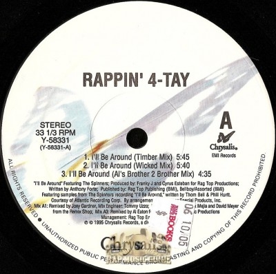 Genre: Rap Category: Record Also Known As (A.K.A.): Rappin 4-Tay Year: 1995 Record Label: Rag Top Records, Chrysalis Records Catalog #: Y-58331 Case Type: 12 inch Area Code: 415 City: San Francisco State: California